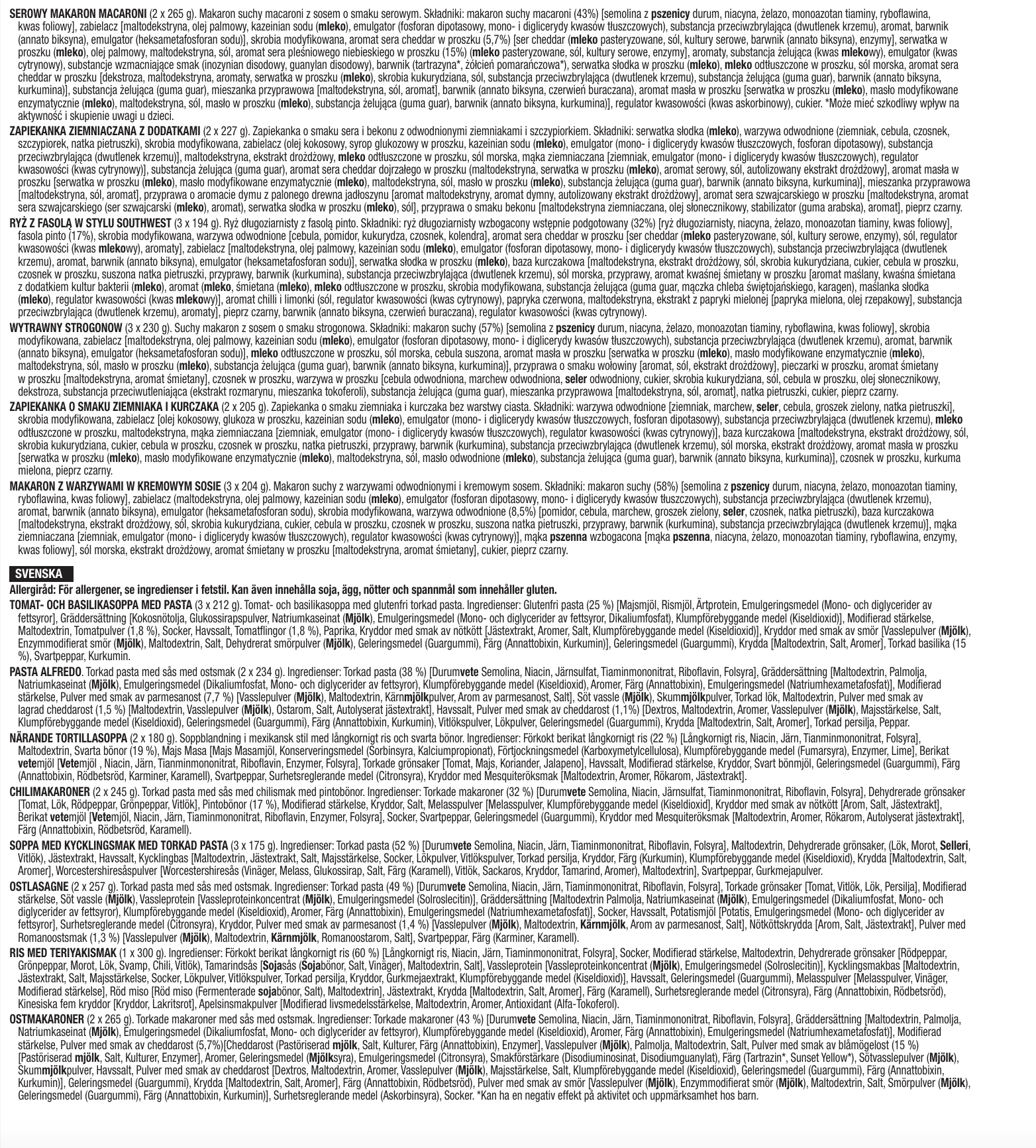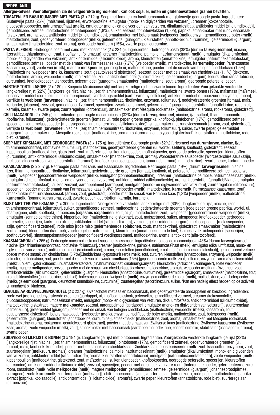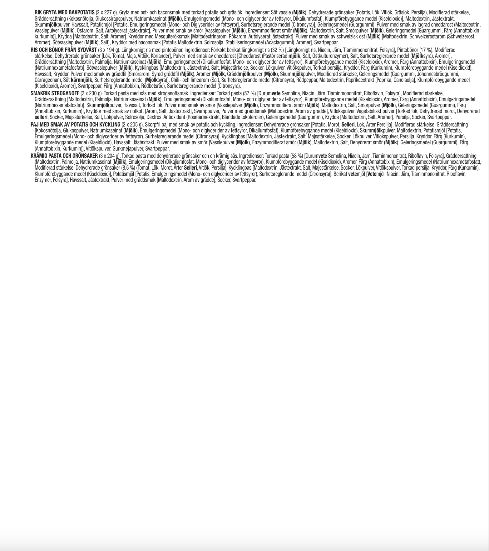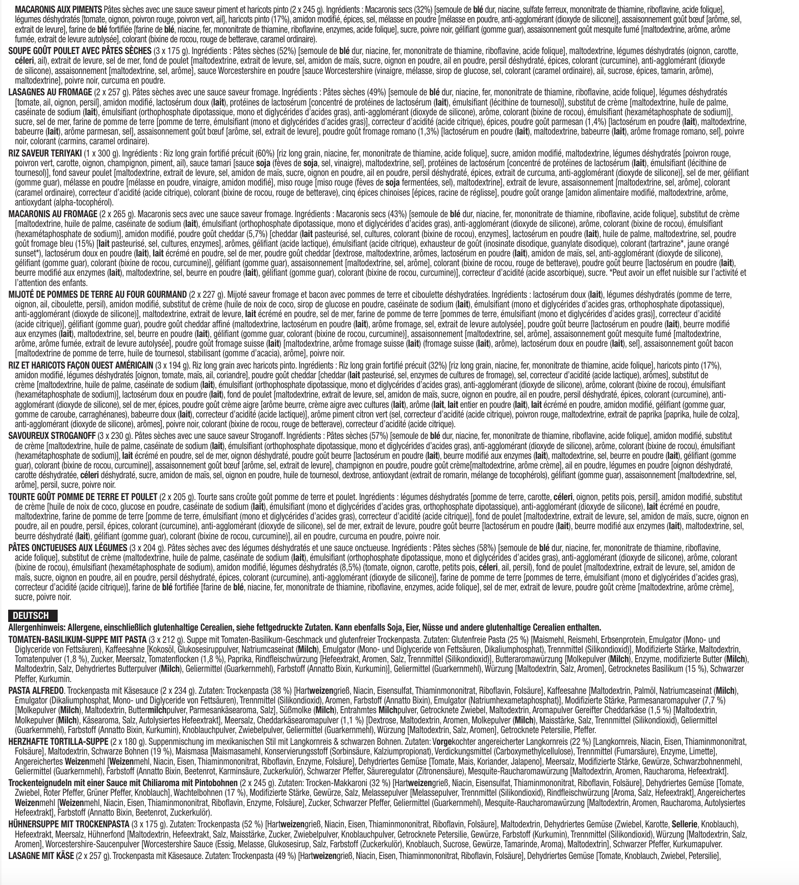 - 3 Beutel cremige Pasta (insgesamt 12 Portionen)