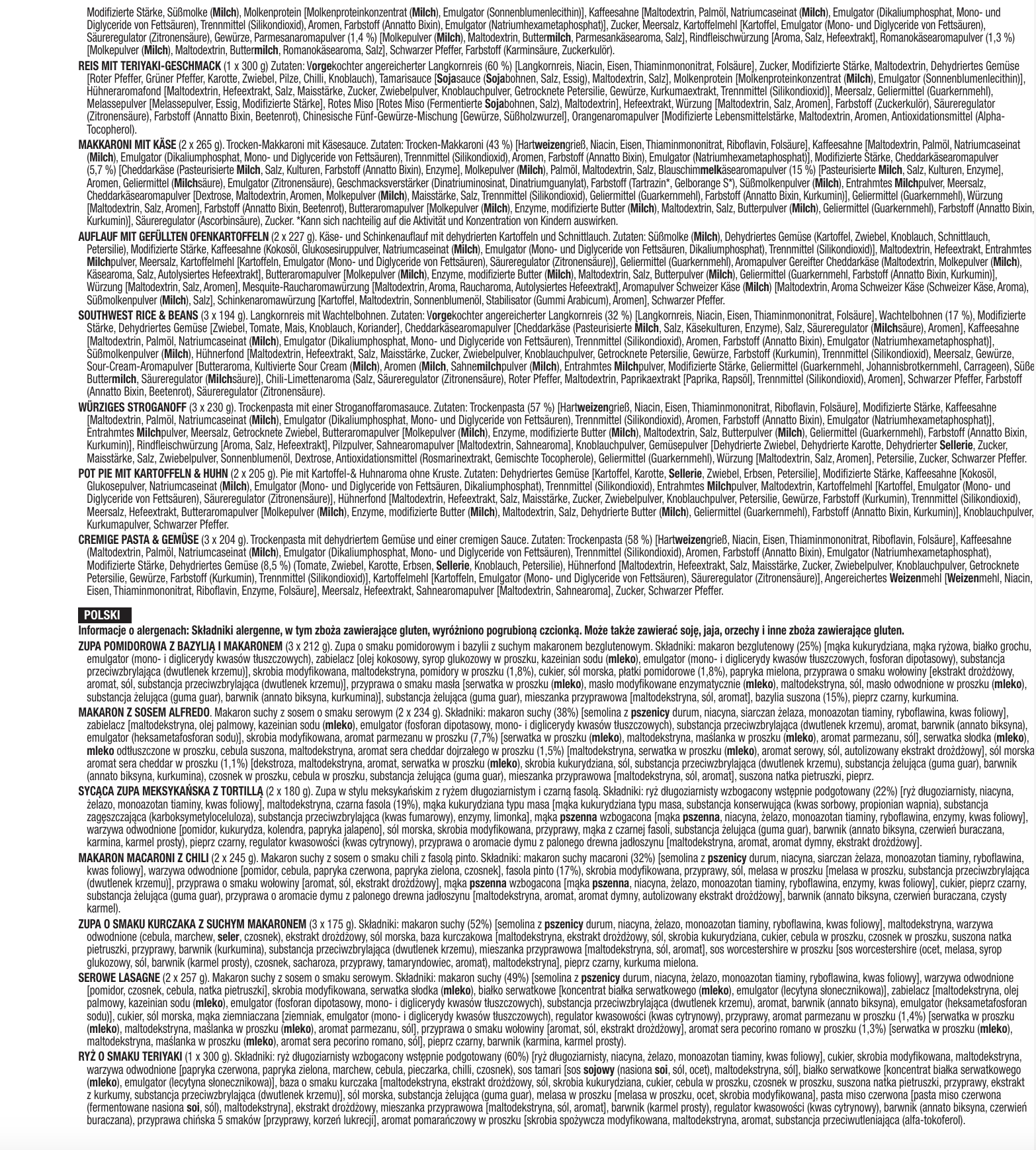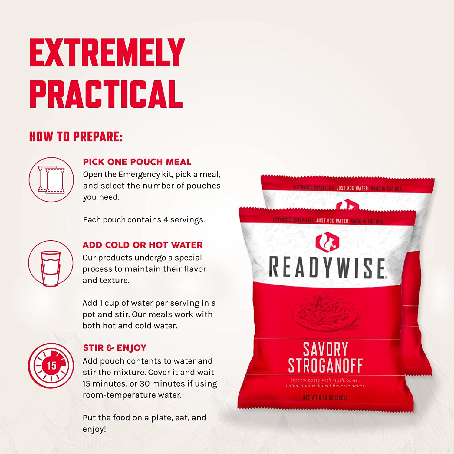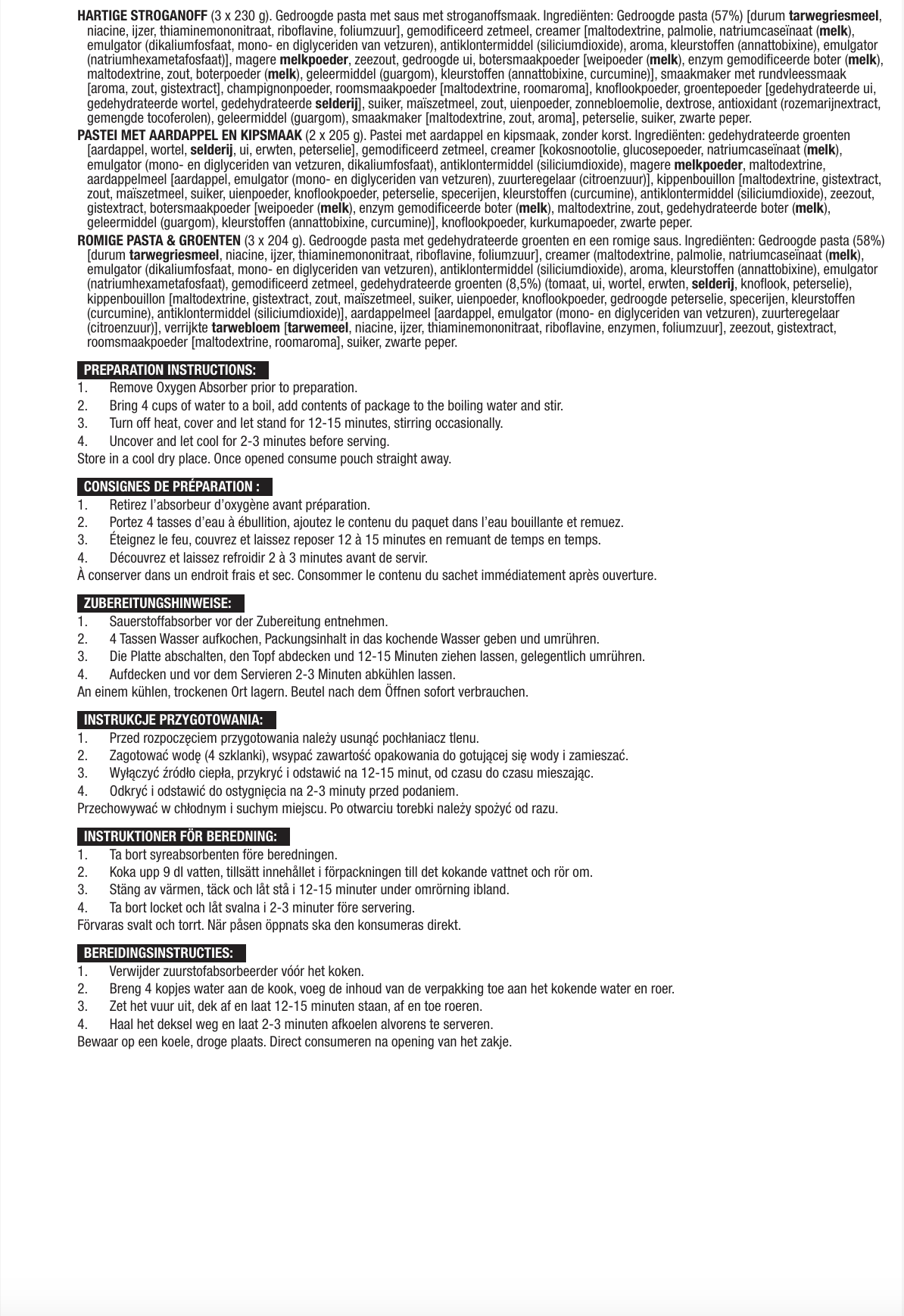 - EINFACH WASSER HINZUFÜGEN: Jedes Hauptgericht lässt sich in Notfällen einfach mit Wasser zubereiten.